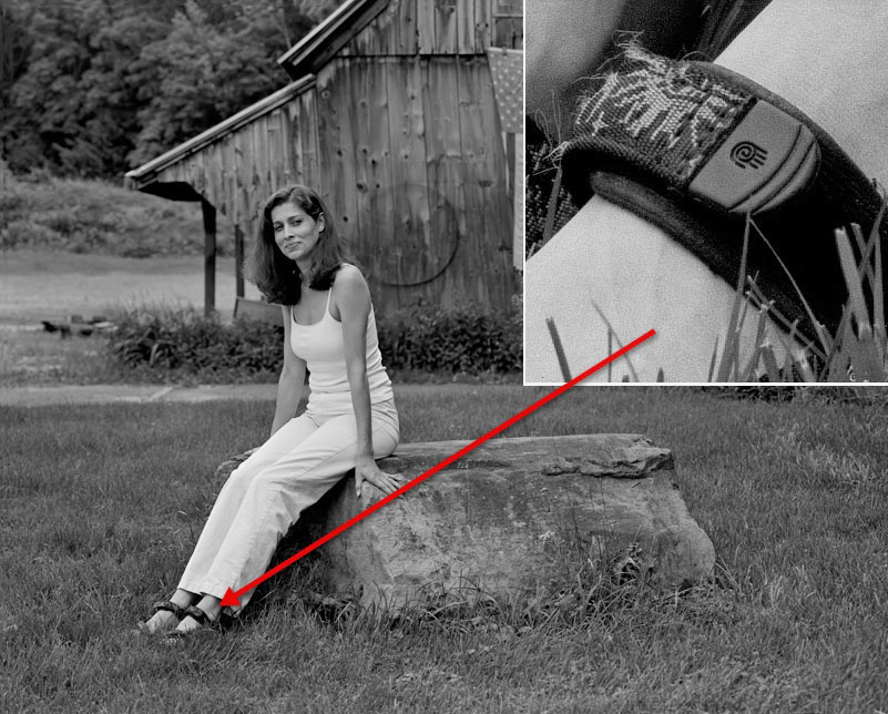Inset shows 12x enlargement: print size = 8x10 feet or 2.4 x 3 meters