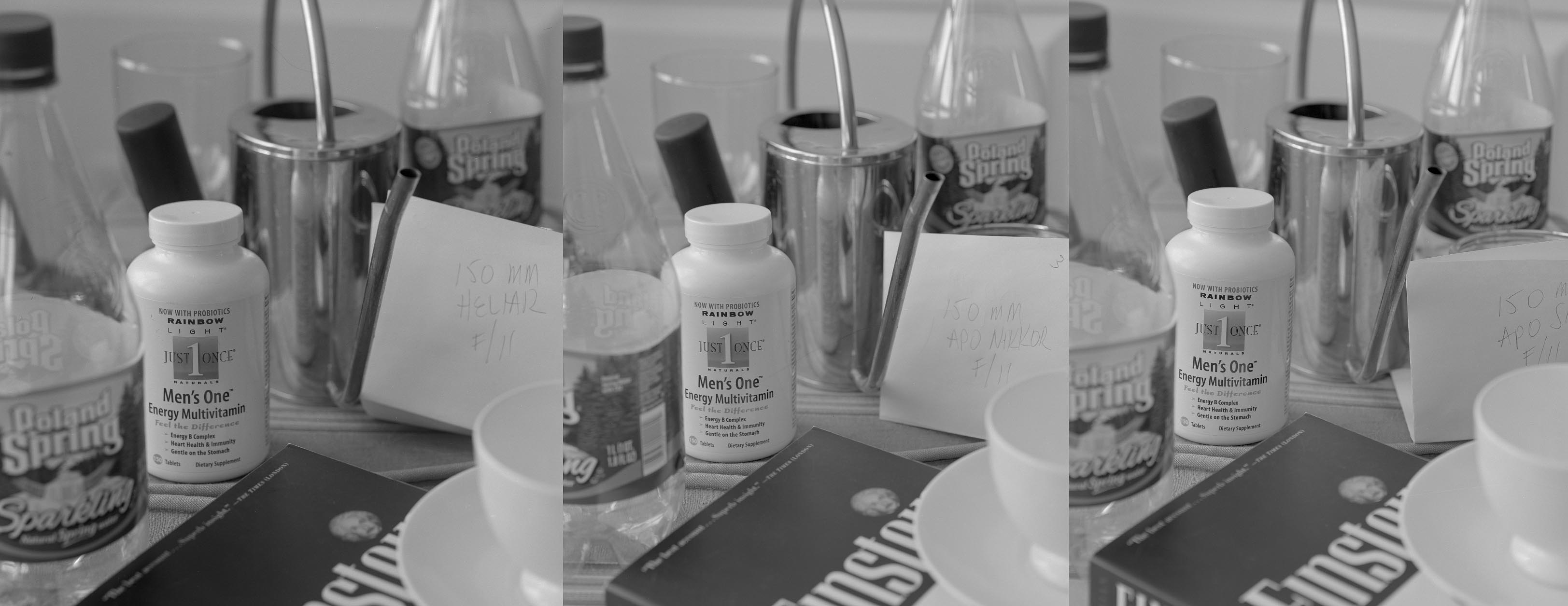 Note: When I made the tests, I focused with the lenses wide open, then stopped them down to f/11 to make the exposure. The first image in the series (made with a 210mm Heliar) exhibits focus shift: the area of sharp focus moved slightly closer when the aperture was changed. As a result, distant objects appear more blurry but this is an accident. My sincere apologies.