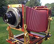wooden 5x7 camera, a Kodak 2D. The Red Dot Apochromat Artar lens is screwed into the adapter. The Alphax